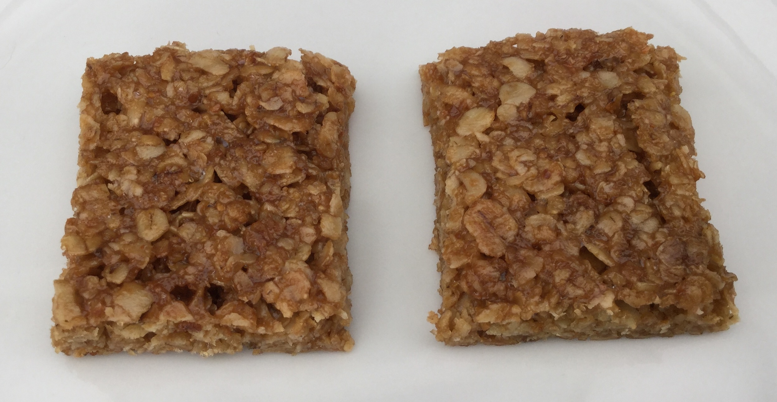 Smelt smørret i en gryde. Rør det sammen med brun farin og sirup. Kom havregryn i og rør det hele sammen. Pres massen ud på en bageplade med bagepapir. Bag ved 180 grader i ca. 20-30 minutter til massen er gylden. Afkøl massen og skær den ud i mindre stykker. Opbevares efterfølgende i tætsluttende beholder.