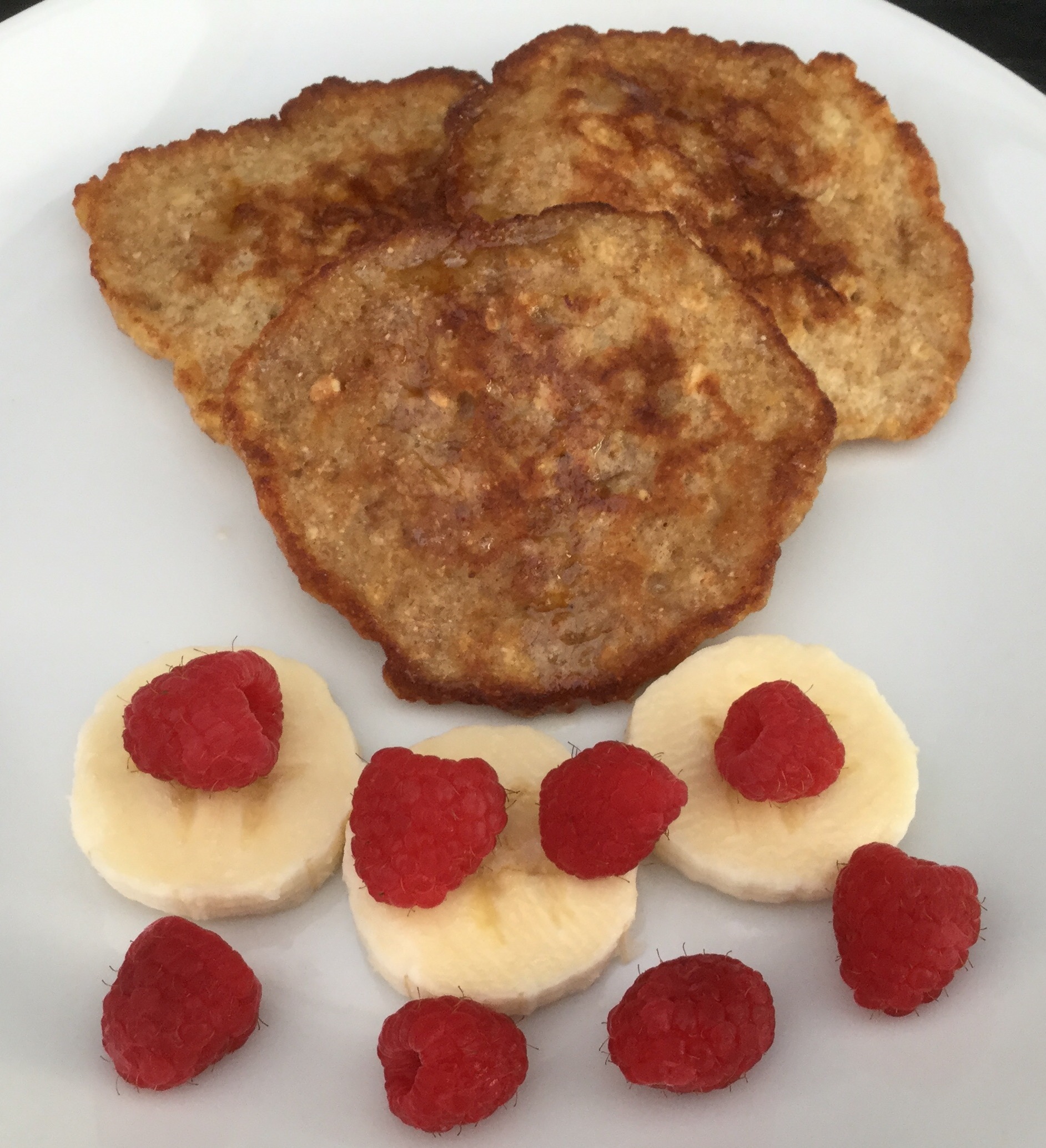 Bland ruggryn, grahamsmel, salt, bagepulver og vanillesukker i en skål. Rør ægget i. Mos bananen godt og rør den i dejen. Tilsæt mælk til dejen har en passende tykkelse.