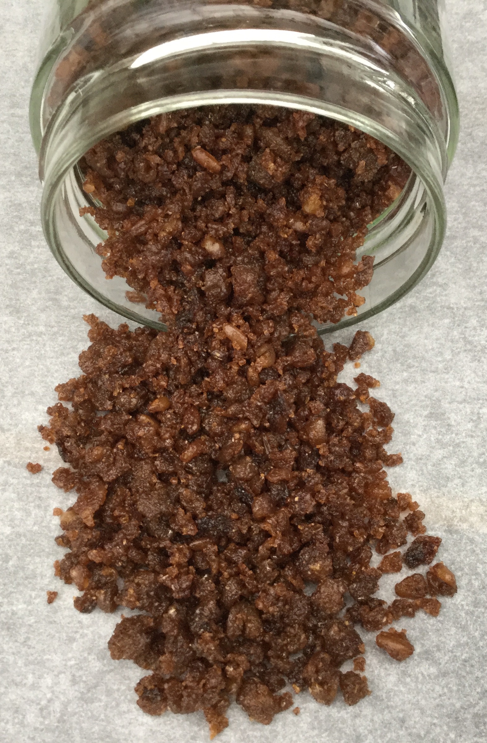 Smelt smørret på en stor pande ved kraftig varme, men uden at det bruner. Rist det revne rugbrød med rørsukkeret i 4-5 minutter ved kraftig varme og under omrøring. Rist evt. yderligere 2-3 minutter ved jævn varme. Lad rugbrødsraspen køle af på en rist med bagepapir.
