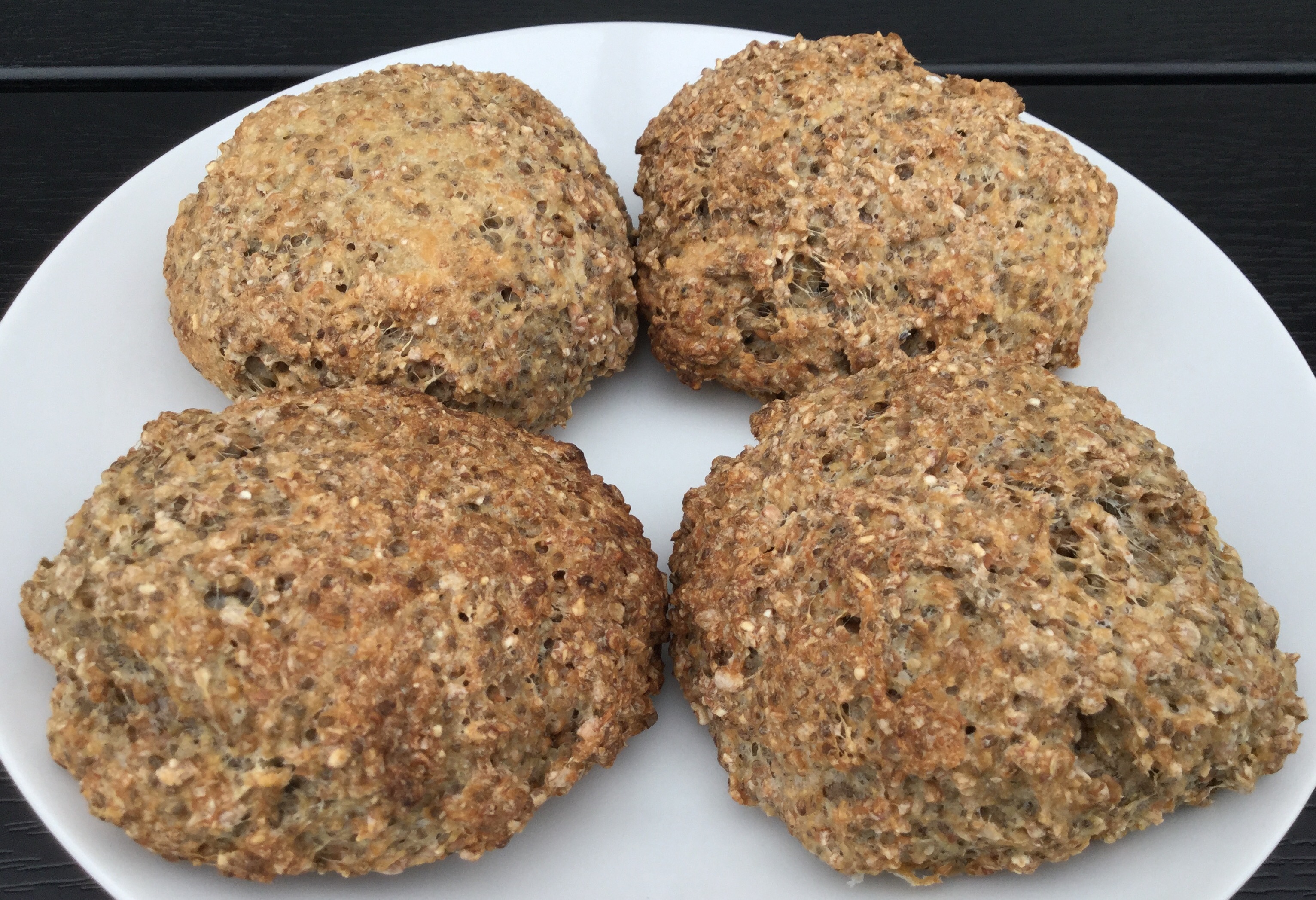 Hæld vandet i en stor skål og opløs gæren heri. Tilsæt honning, olie og salt. Kom chiafrø, havregryn og fuldkornsmel i skålen og rør godt. Tilsæt hvedemelet lidt ad gangen til dejen har en klæbrig konsistens. Skålen dækkes med film og stilles i køleskabet natten over.