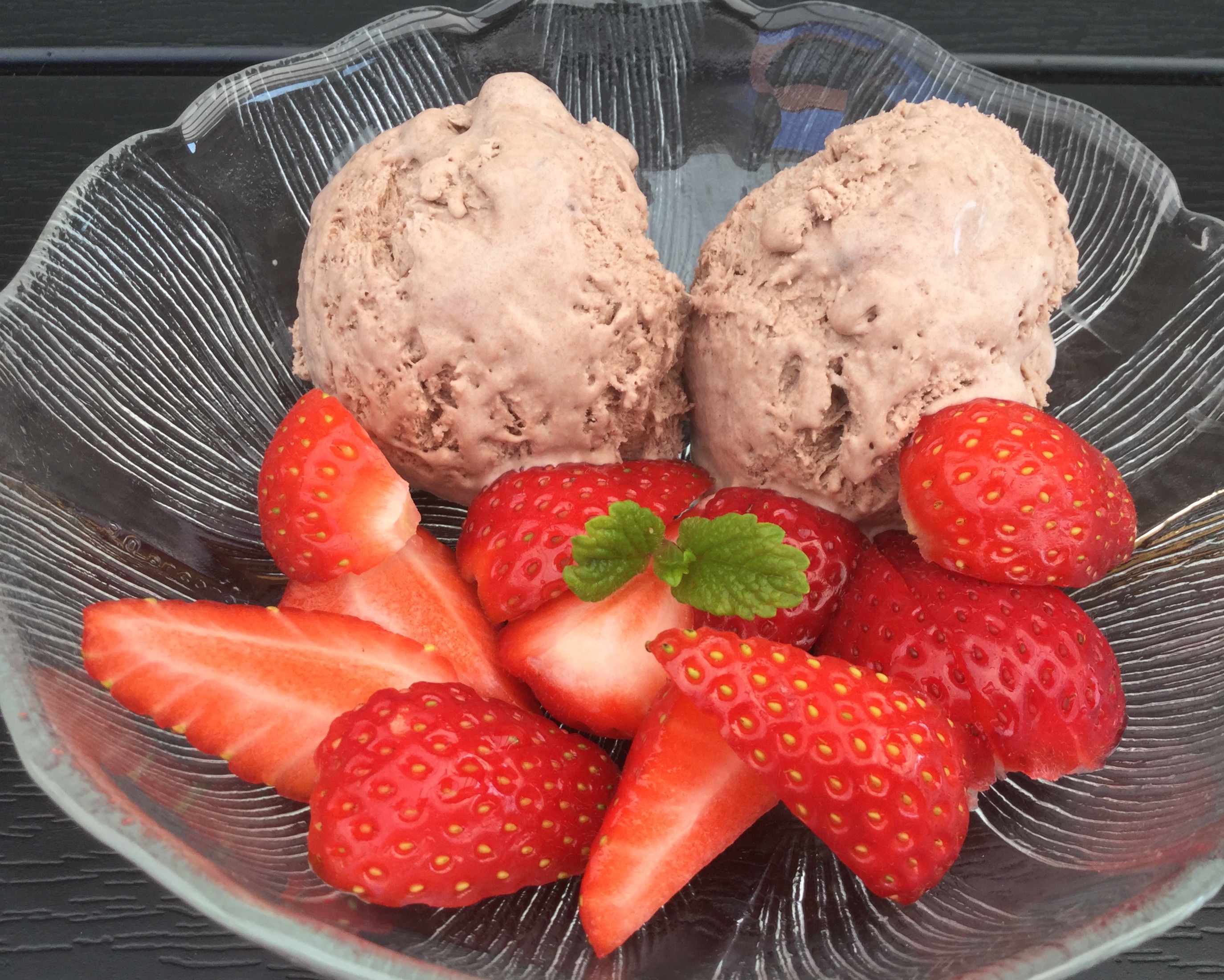Server med jordbær og pynt med citronmelisse.