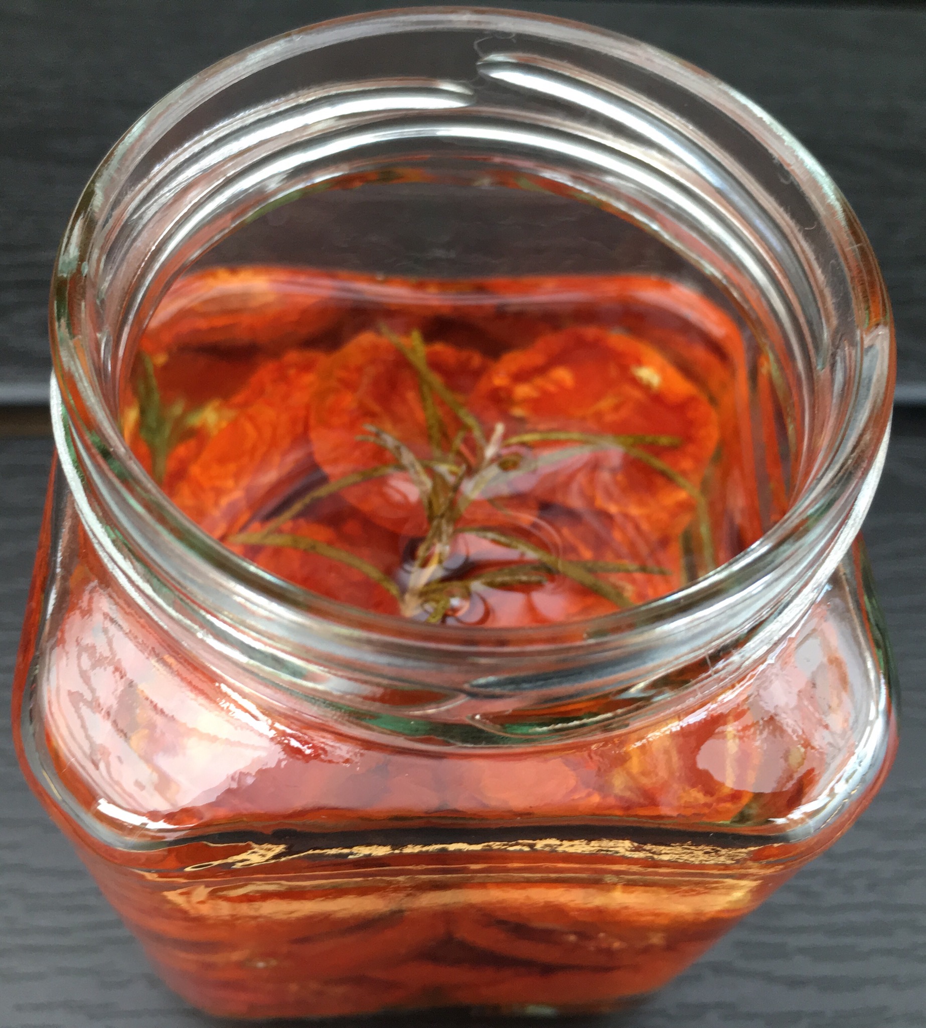 Lad tomaterne køle af, kom dem i rengjorte glas og overhæld dem med olie.