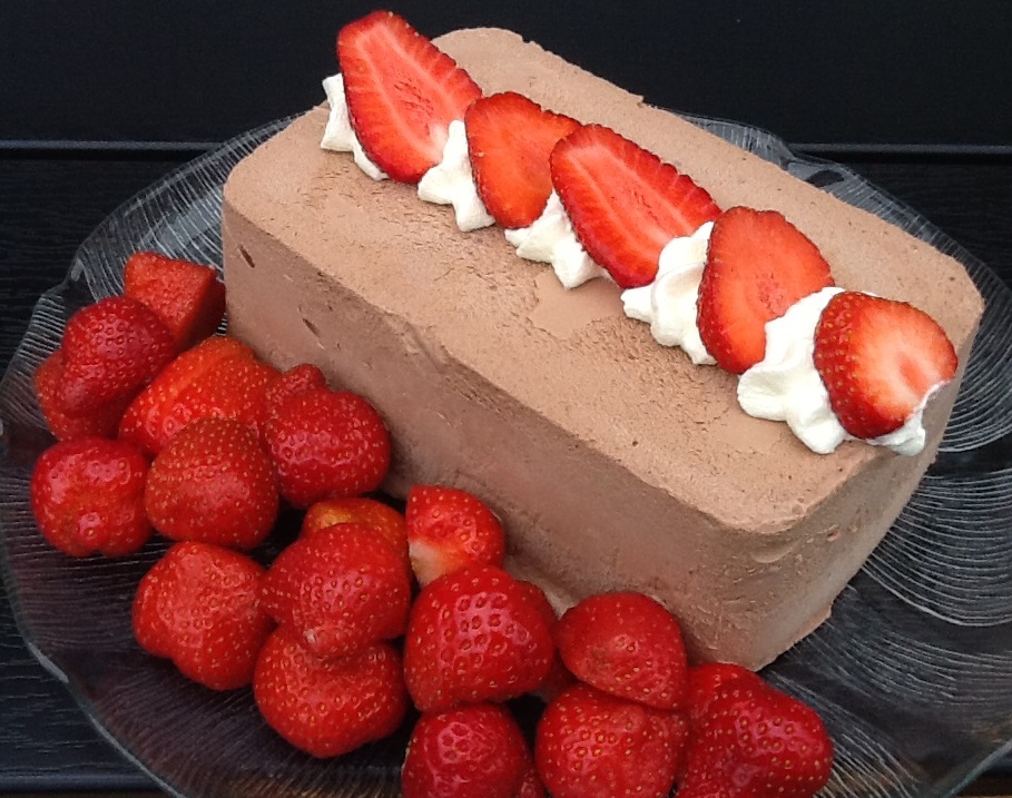 Knæk chokoladen i mindre stykker. Varm dem op med piskefløden, til chokoladen er smeltet. Sæt blandingen i køleskab i 12 timer og pisk det til skum. Rør æggeblommer og flormelis og bland det i. Pisk hviderne stive og vend dem i. Hældes i en form og sættes i fryser til næste dag. Det er ikke nødvendigt at røre i isen. Server med sommerens bær og evt. lidt flødeskum.