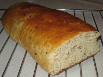 Kog havregryn og mælk til grød og lad den køle lidt af. Udblød gæren i lidt af grøden og hæld resten i. Rør æg, olie, hakkede figner/dadler, sukker og salt i grøden. Ælt mel i, til dejen slipper skålen eller bordet. Lad dejen hæve overdækket på et lunt sted i 45 minutter. Ælt dejen igennem. Form et brød og sæt det på en bageplade med bagepapir. Lad det hæve i yderligere 30 minutter. Bag brødet i ca. 25-30 minutter ved 175 grader. Opbevar det færdigbagte brød i en plasticpose ved stuetemperatur, når det er afkølet.