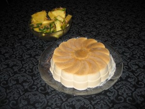 Afkøl ananasstykkerne, så isen ikke hurtigt smelter ved serveringen. Anret kugler af lakridsis sammen med grillede ananasstykker, blåbær og mynte.