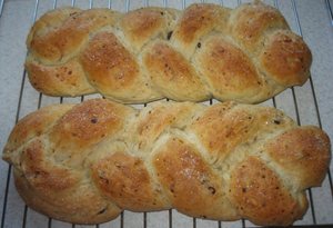 Dejen slås ned og deles i 6 lige store portioner, der rulles til stænger. Stængerne lægges på plade og flettes 3 og 3 til et brød.
