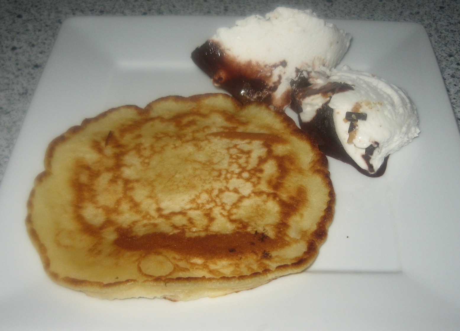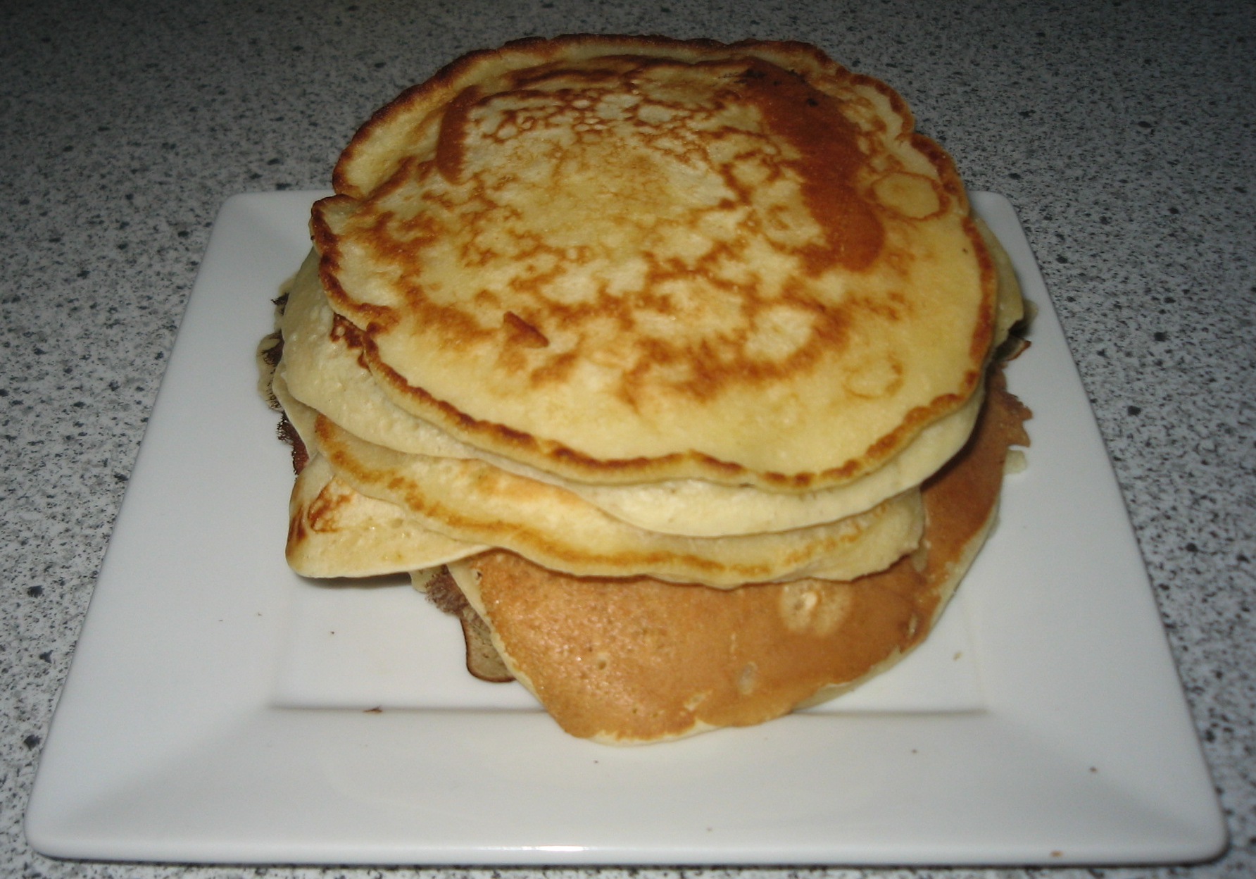Varm en pande op med margarine. Brug 2 spiskeskefulde dej, der lægges hurtigt oven i hinanden pr. pandekage.