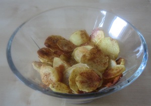 Bland krydderierne i en skål og fordel krydderiblandingen udover den ene side af kartoflerne.Bag kartoflerne i 15-20 minutter ved 200 grader til chipsene er sprøde.