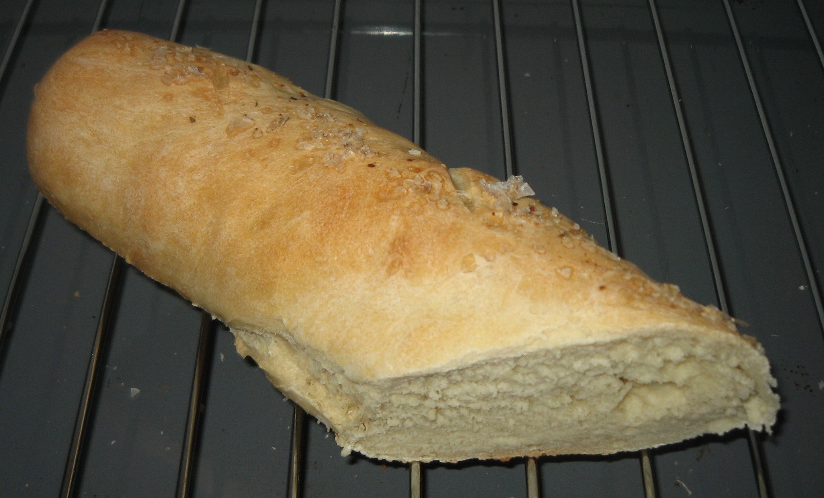 Dejen deles i 3 stykker, der formes til aflange brød. Sno dem et par gange, så de holder formen og drys med citronpeber og flagesalt. Skær 3-4 snit tværs over toppen af dejen.