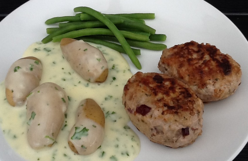 Rør kødet sejt med salt. Tilsæt de øvrige ingredienser og rør godt. Lad gerne farsen trække lidt i køleskabet. Frikadellerne formes med en ske og steges i lidt margarine på en varm pande.