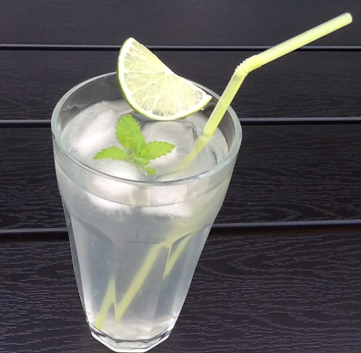 Pynt: 1 limeskive og mynte eller citronmelisse