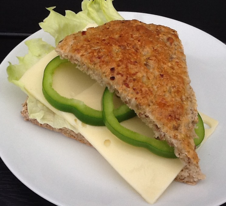Serveringsforslag: Flæk en rugbrødstrekant og smør den evt. med lidt smør. Herpå lægges icebergsalat, som er revet i grove stykker. Kom ost og tynde skiver af grøn peberfrugt herpå og læg den anden halve rugmelstrekant på som "låg".