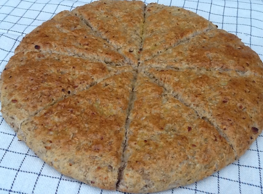 Kog rugkernerne i vand ved svag varme og under låg i ca. 5 minutter. Tag gryden af varmen og lad kernerne stå i ca. 10 minutter. Smelt margarinen i de varme kerner og tilsæt mælk. Hæld blandingen i en skål og rør gæren ud heri. Rør hytteost i blandingen. Tilsæt de øvrige ingredienser (hold lidt af melet tilbage). Slå dejen godt sammen. Lad dejen hæve tildækket et lunt sted i ca. 1 time. Tag dejen ud på et meldrysset bord og ælt den godt igennem. Tilsæt evt. resten af melet. Form dejen med hånden til et rundt og fladt brød (ca. 28 cm i diameter) og læg det på en plade med bagepapir. Skær brødet næsten igennem, så der bliver 8 trekanter. Lad brødet efterhæve i ca. 30 minutter. Pensl brødet med sammenpisket æg og sæt det i kold ovn. Indstil på 225 grader og bag i ca. 25 minutter.