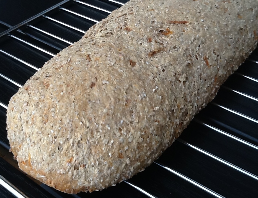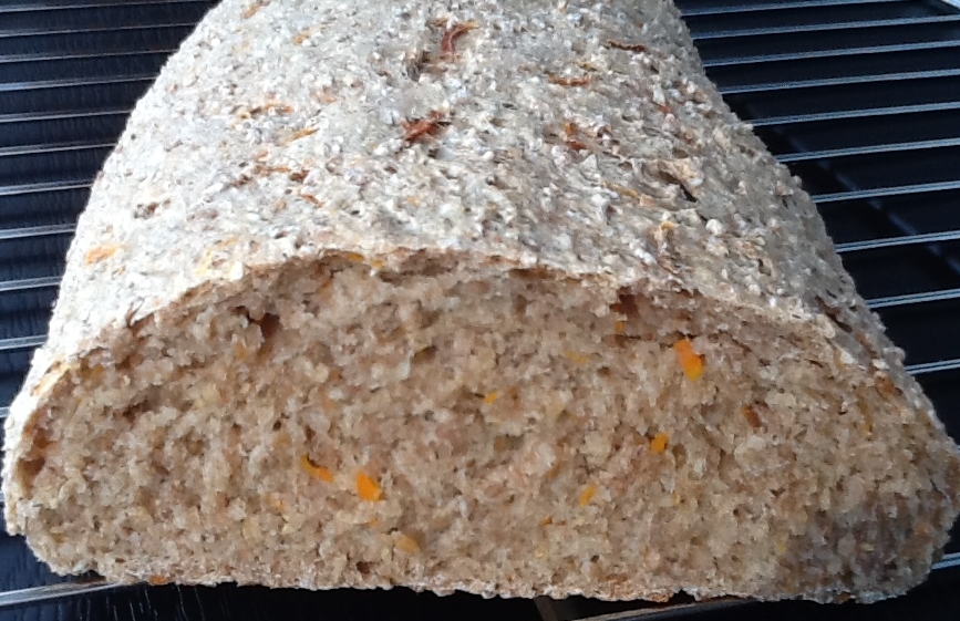 Rør gæren ud i vandet. Tilsæt kærnemælk, salt og groft revet gulerod. Rør fuldkornsmelet i og lad dejen hvile 30 minutter.