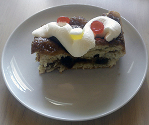 Kagen kan pyntes med flødeskum og slik.