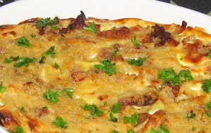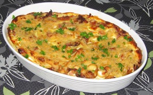 Bag det hele i midten af ovnen i 30 minutter. Skru derefter varmen op til 220 grader og gratiner yderligere i 10 minutter. Gerne på øverste rille.