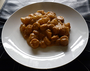 Skær de kolde kogte kartofler i skiver og tilsæt mælk og tomatpuré. Bland det hele godt sammen og lad retten småsimre i ca. 15 min. Herefter tilsættes fløden og retten simre i yderligere 15 min. Smag til med salt og peber.
