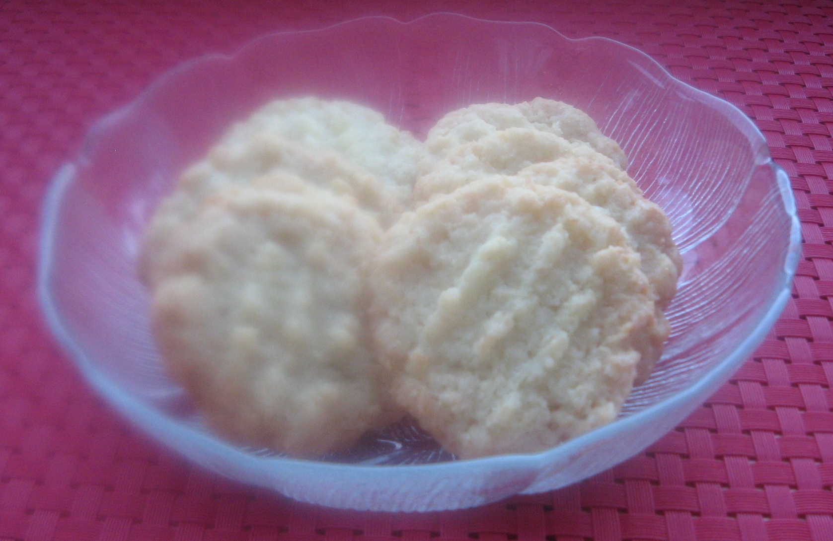 Trilles i stænger, der skæres ud og trilles til kugler. Kuglerne sættes på bagepladen og trykkes flade med en gaffel.