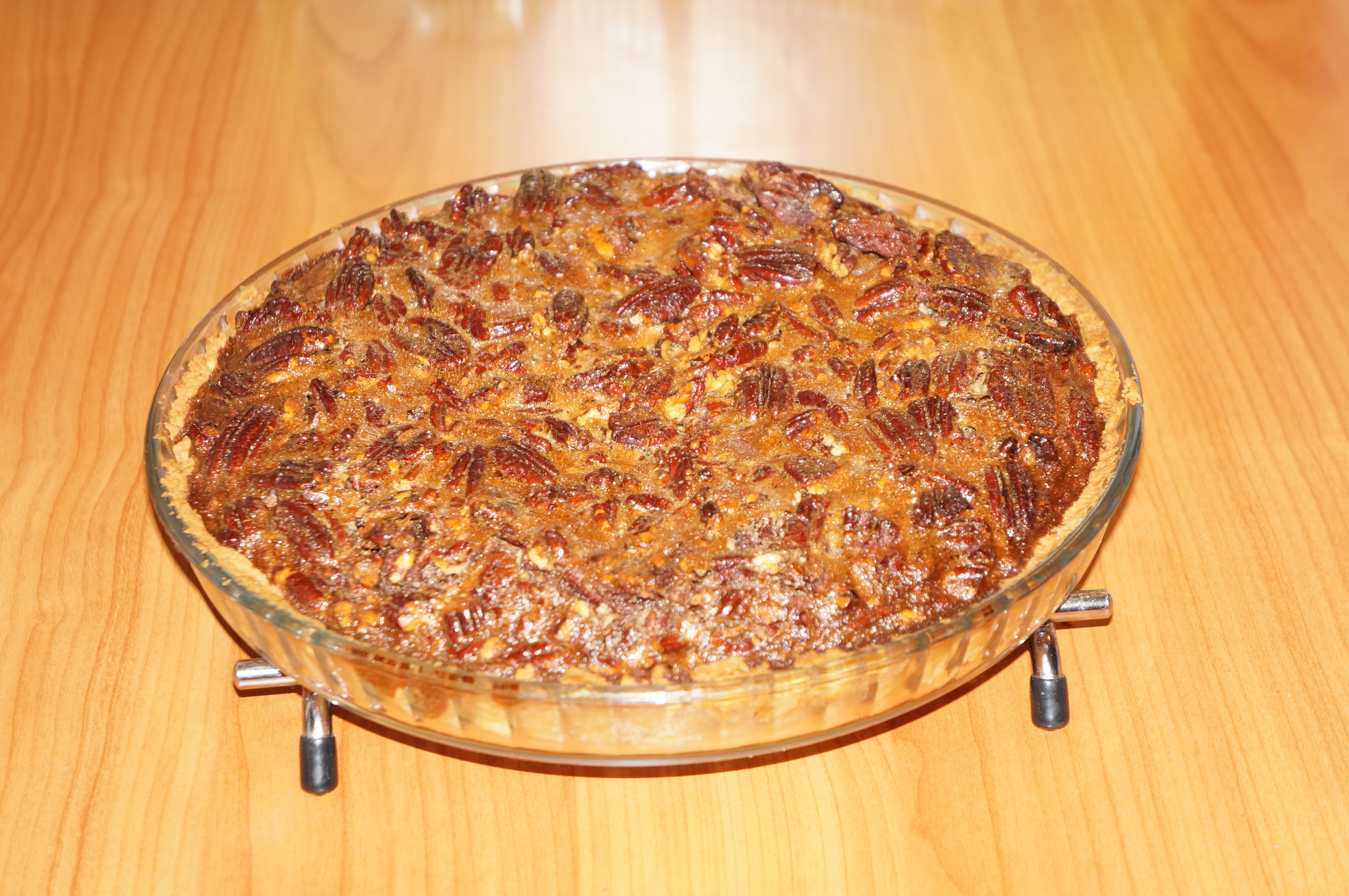 Pisk æg, sukker og kanel sammen i en skål med et piskeris. Læg halvdelen af pekannødderne i et rent viskestykke og knus dem med en kagerulle. Tilsæt de knuste pekannødder, sirup, smeltet smør og whisky og rør godt rundt, indtil det er en ensartet masse. Tilsæt de hele pekannødder og rør rundt.