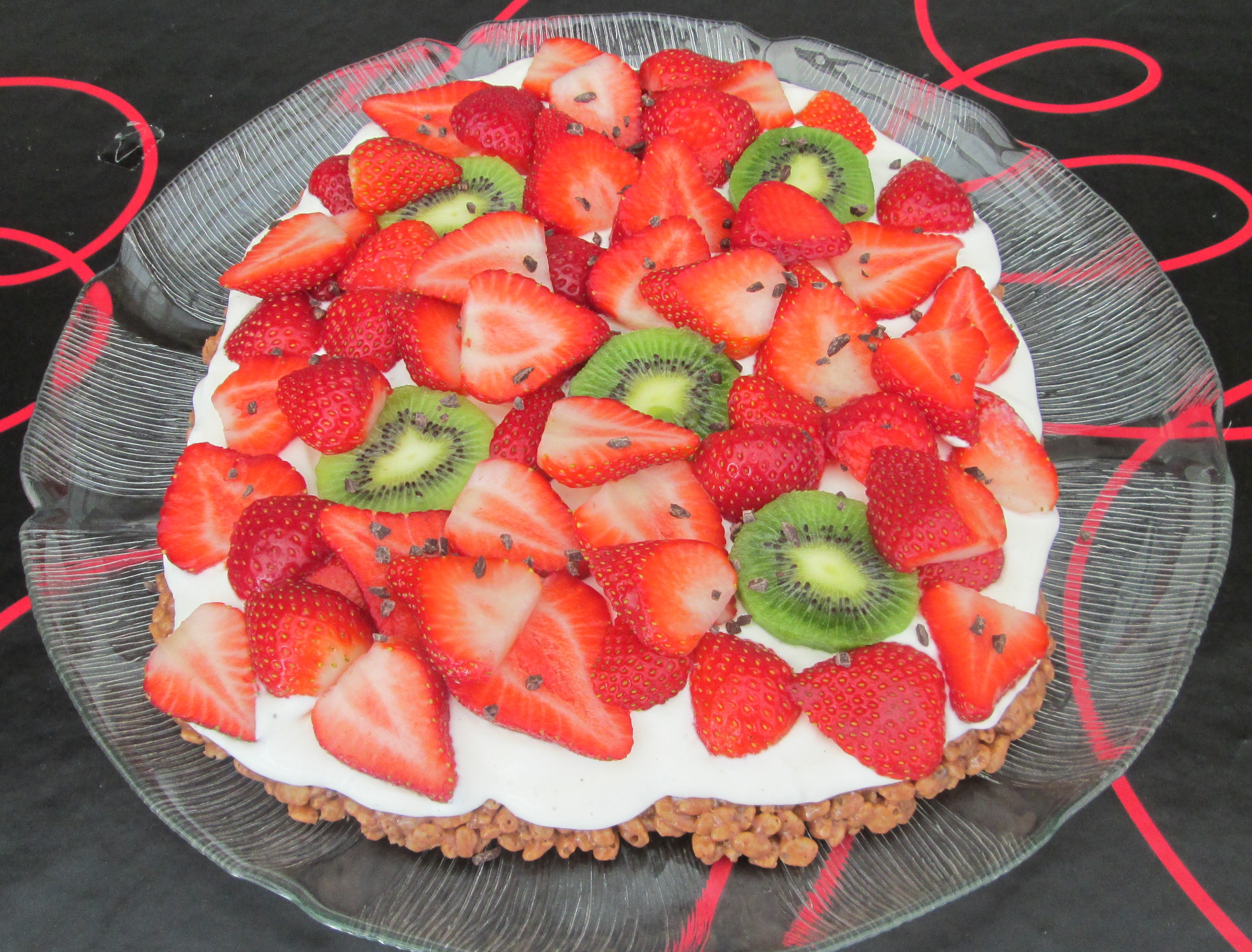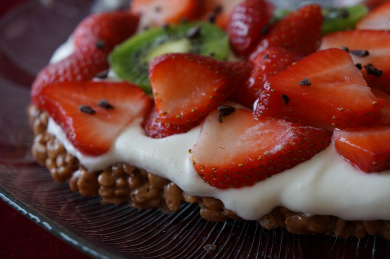 Skær Marsbarerne i mindre stykker. Smelt dem sammen med smør og sirup i en gryde ved svag/medium varme. Når det er helt smeltet, tages gryden af varmen og rice krispies blandes i. Hæld massen ud på et stykke bagepapir og form til en bund. Stilles på køl. Pisk fløden stiv med flormelis og vanillesukker og vend creme fraichen i. Hæld saften fra ananas og lad dem dryppe helt af i en si. Når bunden er kold/stivnet, kommes et tyndt lag af flødeblandingen på og der pyntes med ananas, blåbær og evt. revet chokolade. Server.