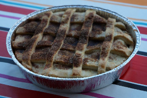 Æblerne skrælles og skæres i 2-3 mm. tykke skiver. Bland sukker, mel og kanel sammen i en skål og rør det sammen, til det bliver til en ensartet blanding. Kom æbleskiverne i skålen og vend dem godt rundt. Fordel dem godt i tærteformen.