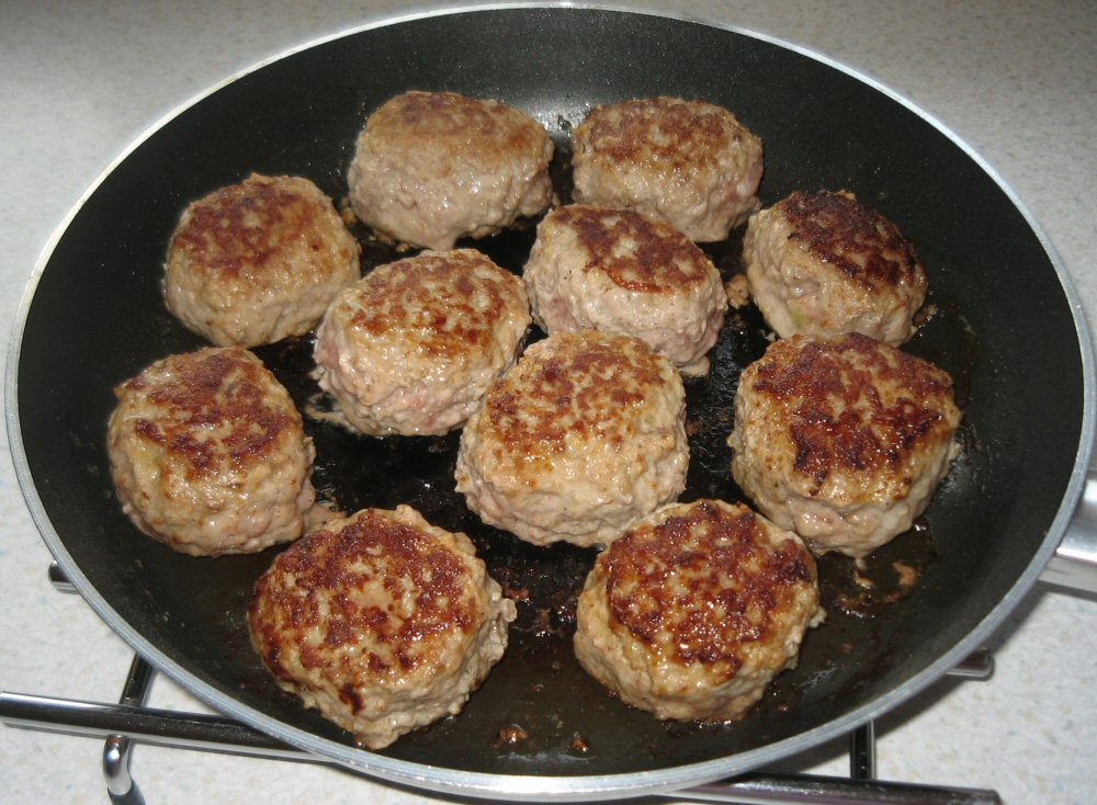 Farsen kommes i en skål sammen med mel, fintrevet løg, salt, peber og æg. Rør farsen sammen og tilsæt mælken lidt af gangen indtil farsen er lind. Farsen formes med en ske til frikadeller, som steges i lidt margarine på en varm pande.