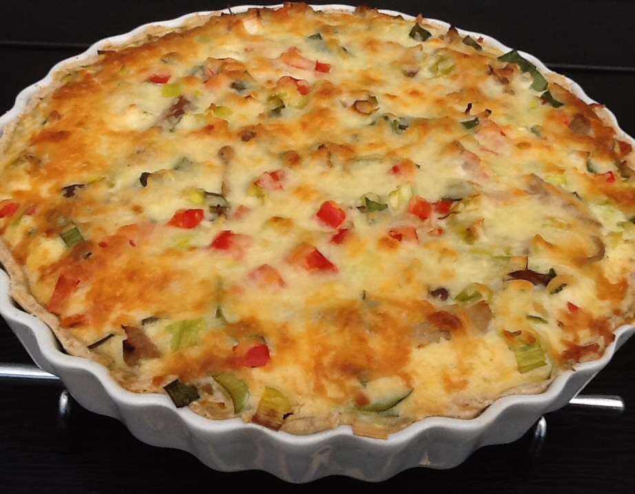 Porrerne rengøres, halveres på langs og skæres i 1 cm tykke skiver. Peberfrugten skæres i små tern. Porrer og peberfrugt svitses i lidt olie på panden. Tilsæt pulled pork og Worcestershire sovs og varm det igennem. Pisk æg, fløde, salt og peber sammen. Læg tærtefyldet i tærteformen og hæld æggeblandingen over. Drys revet ost over og bag ved 200 grader i 25-30 minutter.