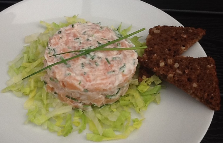 Laksetataren kan også serveres til frokost med rugbrød (evt. ristet).