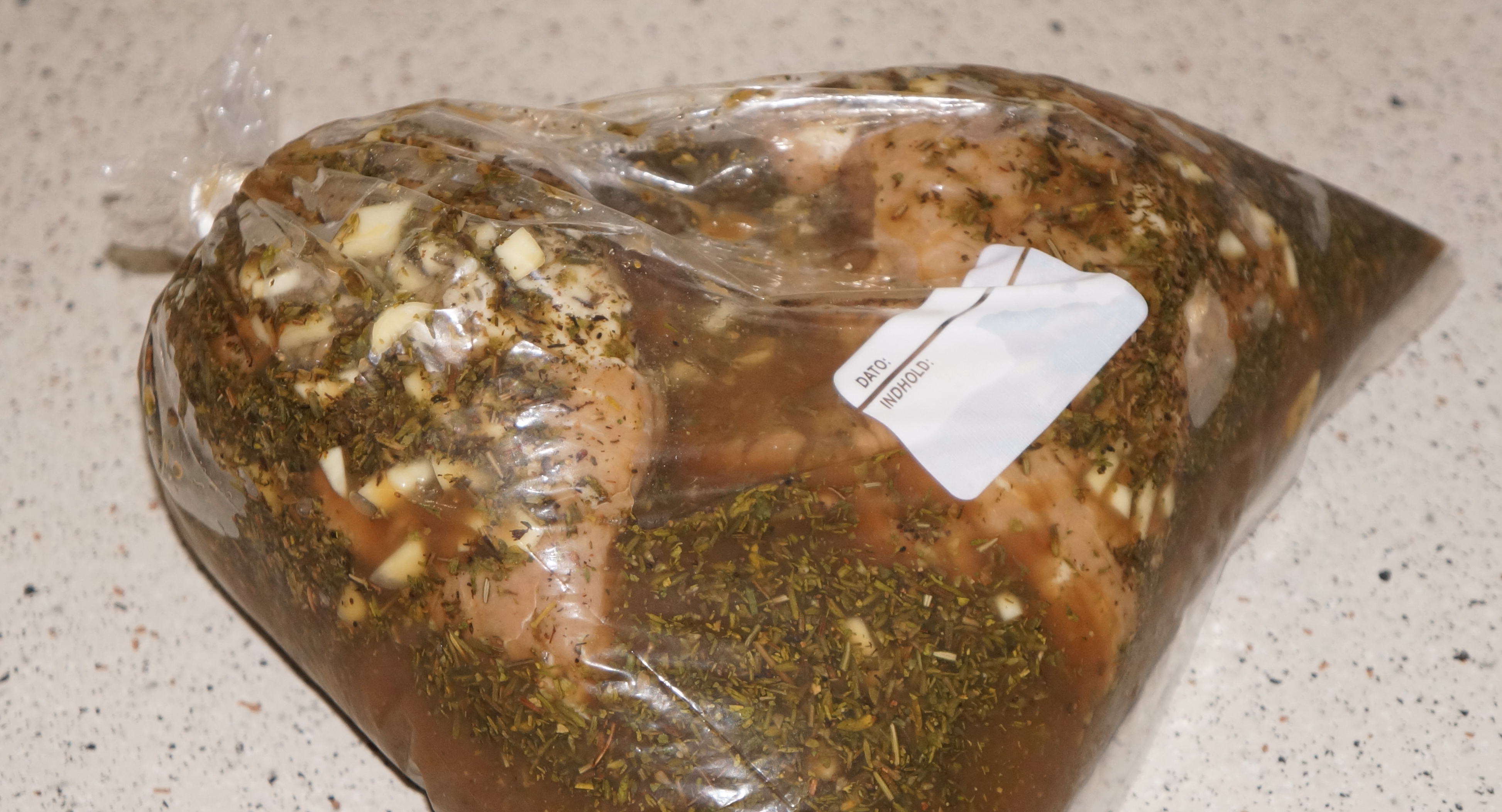 Bland det godt og hæld det i fryseposen med nakkefileten.