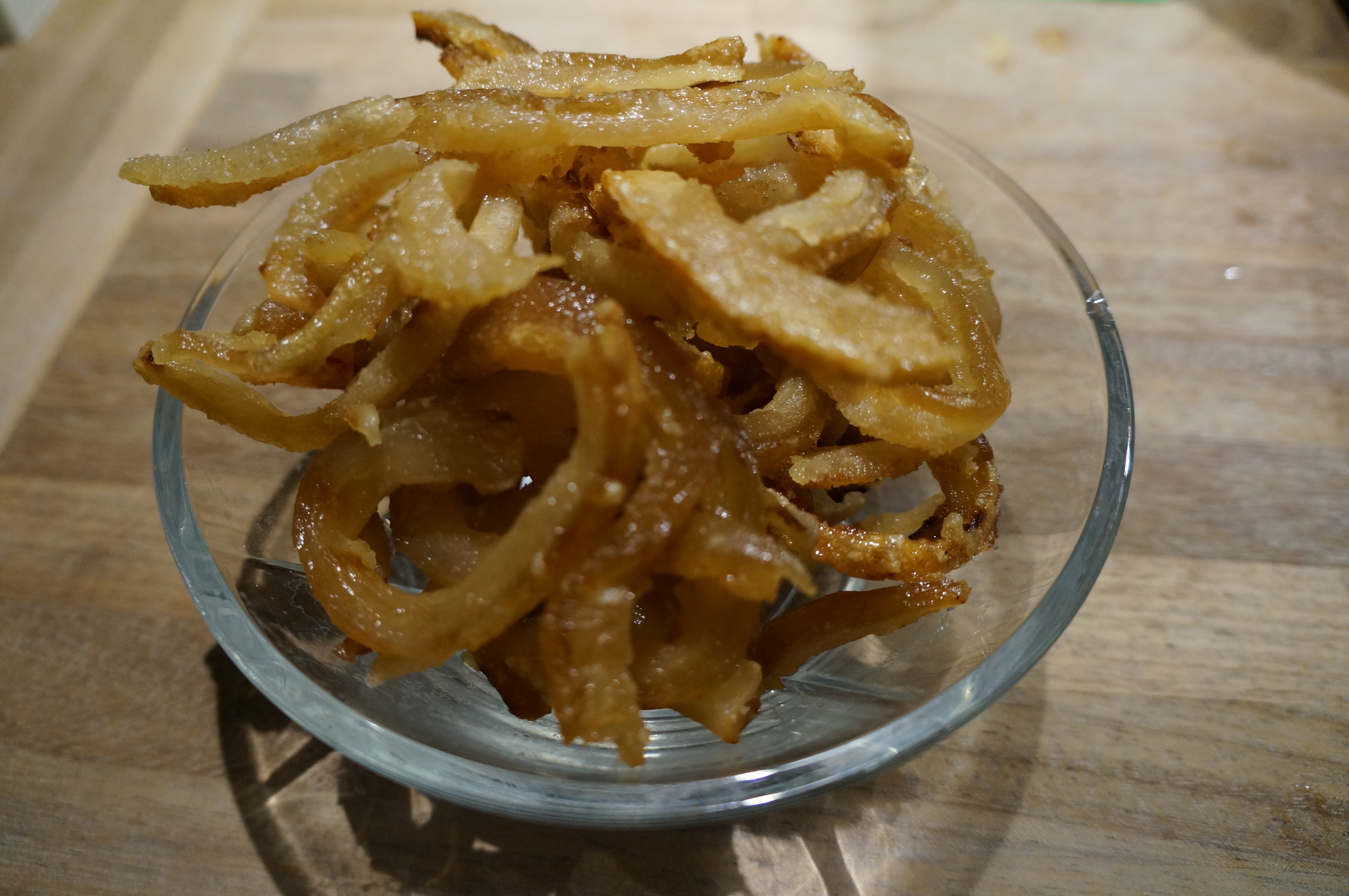 Tag dem ud af ovnen og lad dem dryppe af på køkkenrulle. Server dem lune til flæskesteg, i en ribbenstegsburger eller som en snack.