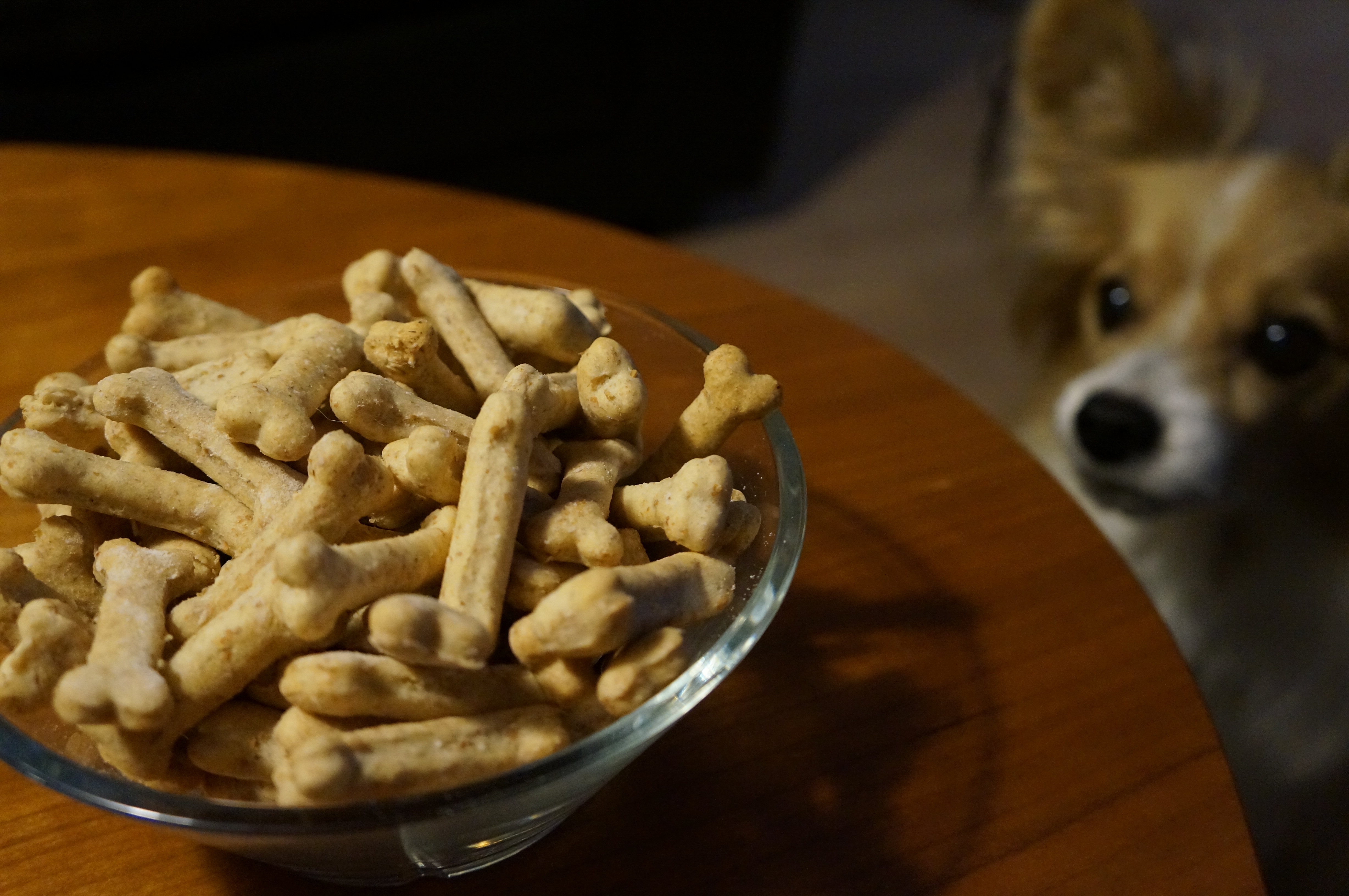 Rul dejen ud til den er ca. 1/4 cm. Brug en kødbensformede udstikker eller skær blot dejen i små firkanter.