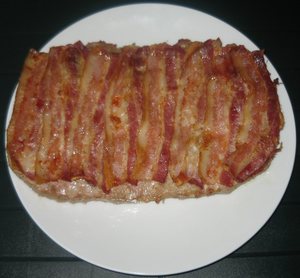 Farsen kommes i en skål sammen med mel, fintrevet løg, salt, peber og æg. Rør farsen sammen og tilsæt mælken lidt af gangen indtil farsen er lind. Kom farsen i et ovnfast fad, læg baconskiver over farsen. Steger i ovnen ved 200 grader i ca. 45 minutter indtil baconen er gylden.