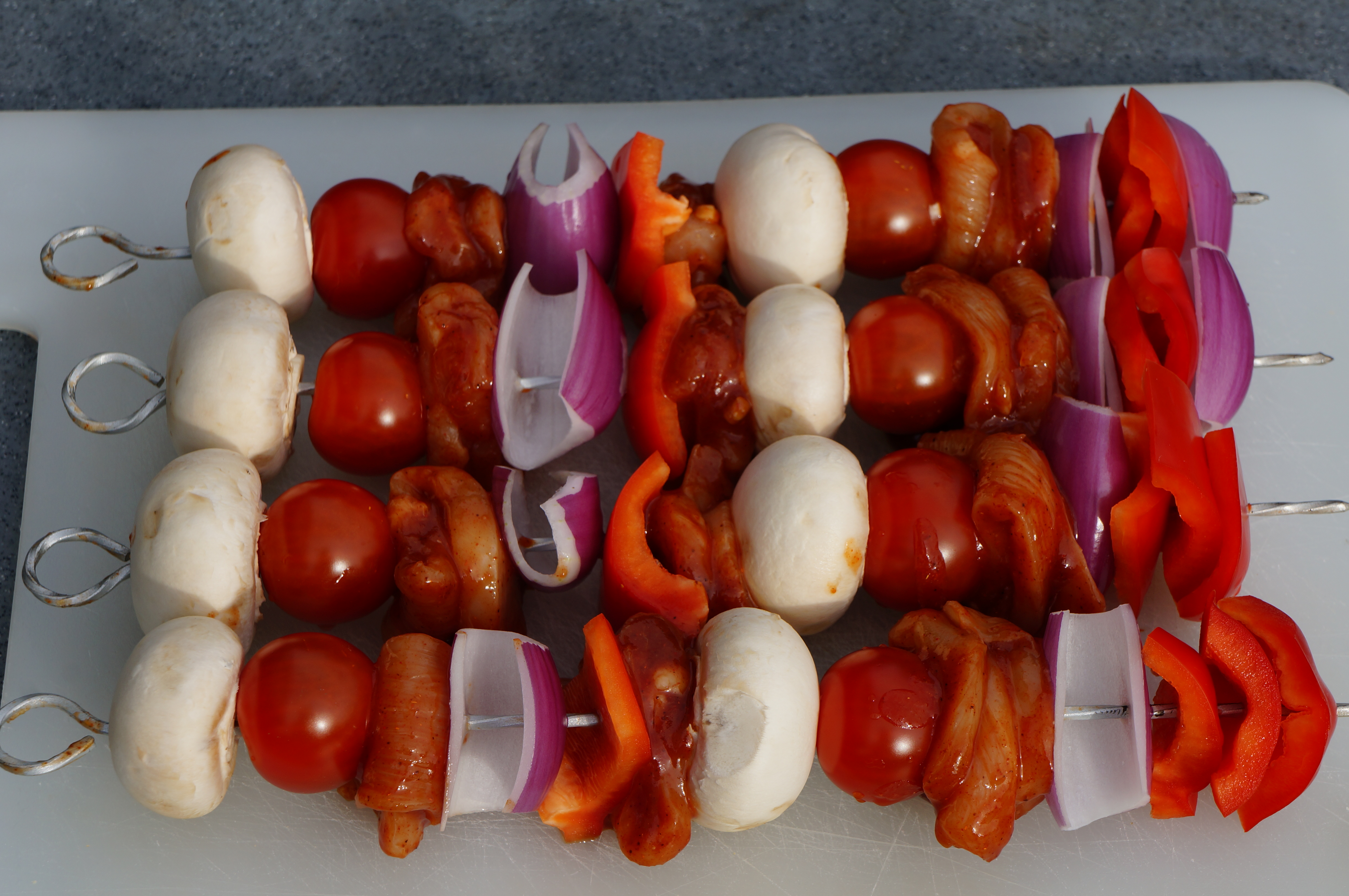 Fordel alle delene på 4 grillspyd