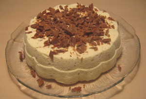 Isen tages ud af fryseren en halv time før servering og den sidste 2 pack daim hakkes og bruges som pynt.