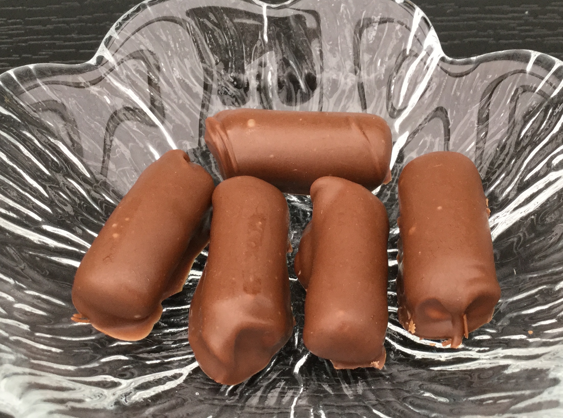 Dyp skolekridtet i chokoladen og sæt dem på bagepapir.
