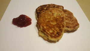 Bland alle ingredienserne sammen. Varm en pande og kom fedtstof på. Når fedtstoffet er smeltet, kommes dejen på. En pandekage svarer til en spiseskefuld.