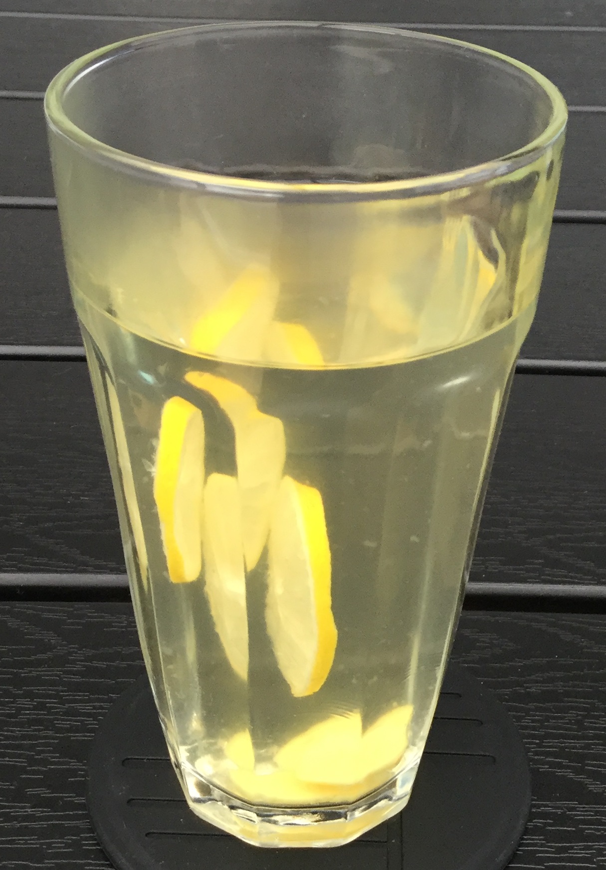 Kom hyldeblomstsaft, citron og ingefær i et stort glas, der kan tåle kogende vand. Hæld derefter kogende vand i og lad trække 1 minut.