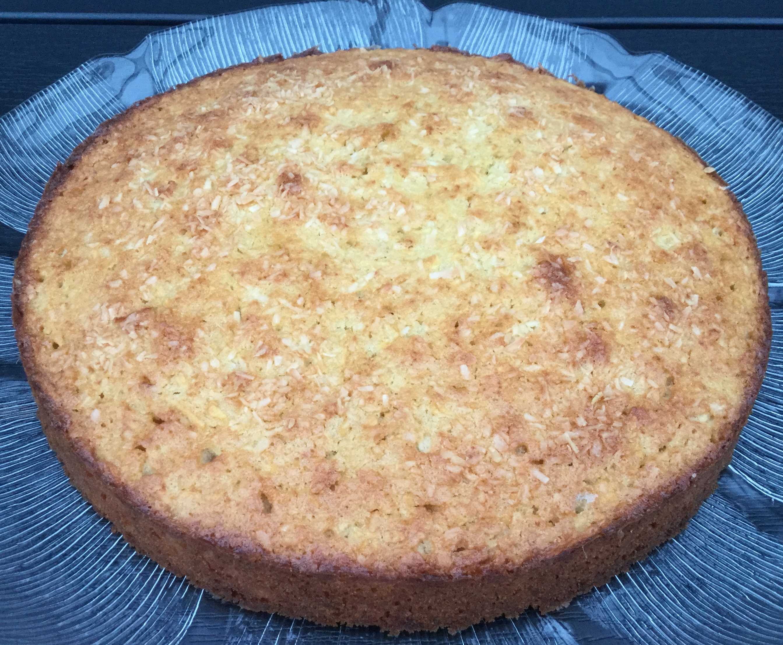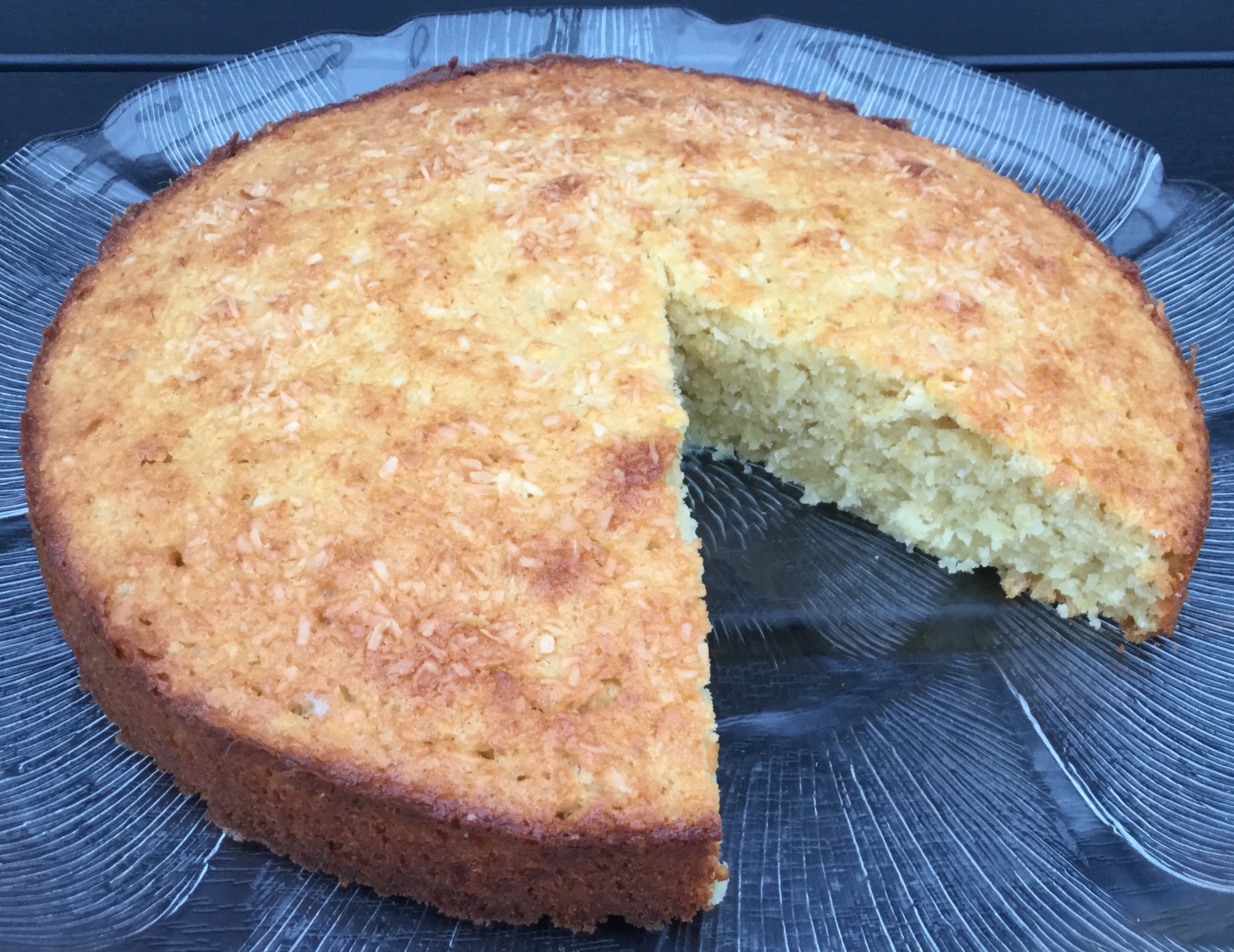 Margarine og sukker piskes godt. Æggene røres i et ad gangen. Mel, bagepulver og kokosmel blandes og røres i skiftevis med mælken. Æblerne skrælles, rives groft og røres i dejen. Dejen fyldes i en smurt springform (ca. 25 cm). Drys kokosmel over. Bag kagen ca. 50 minutter ved 175 grader.