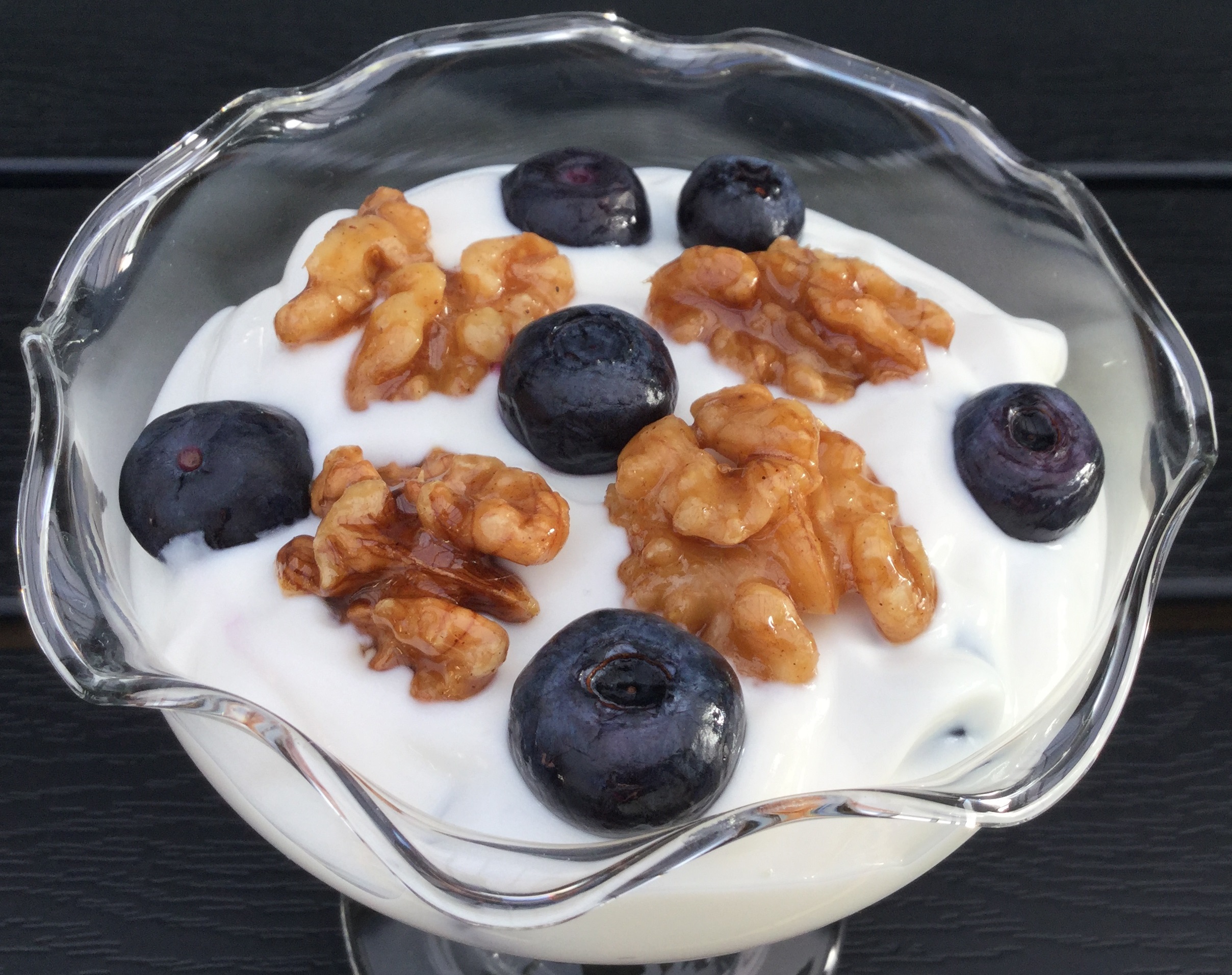 Græsk yoghurt med blåbær og glaserede valnødder (2 pers.)