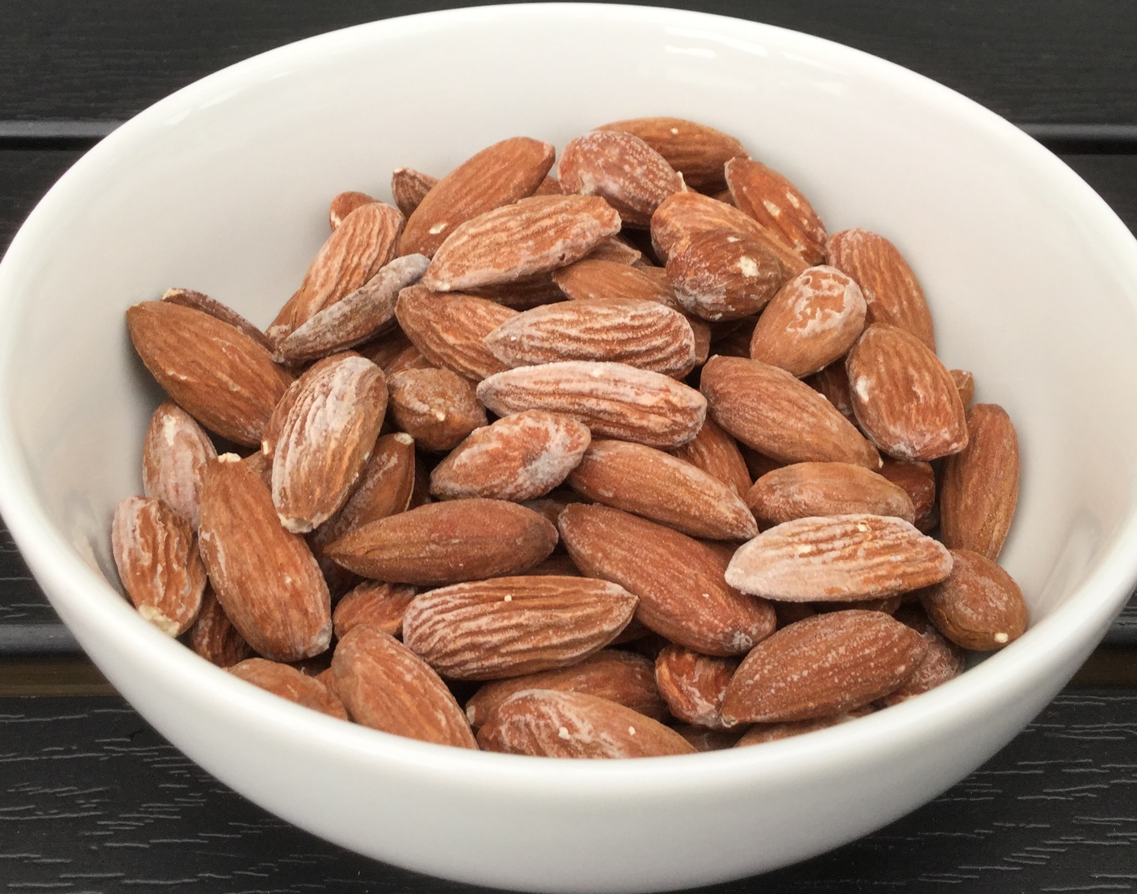 Hæld vandet fra mandlerne gennem en sigte og bred dem ud på en bageplade med bagepapir. Sæt dem i ovnen i 20 minutter ved 150 grader. Lad mandlerne køle helt af inden servering. Opbevares i en lufttæt beholder.