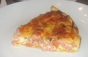 I stedet for bacontern, put 200 g tynde skinkestrimler i.