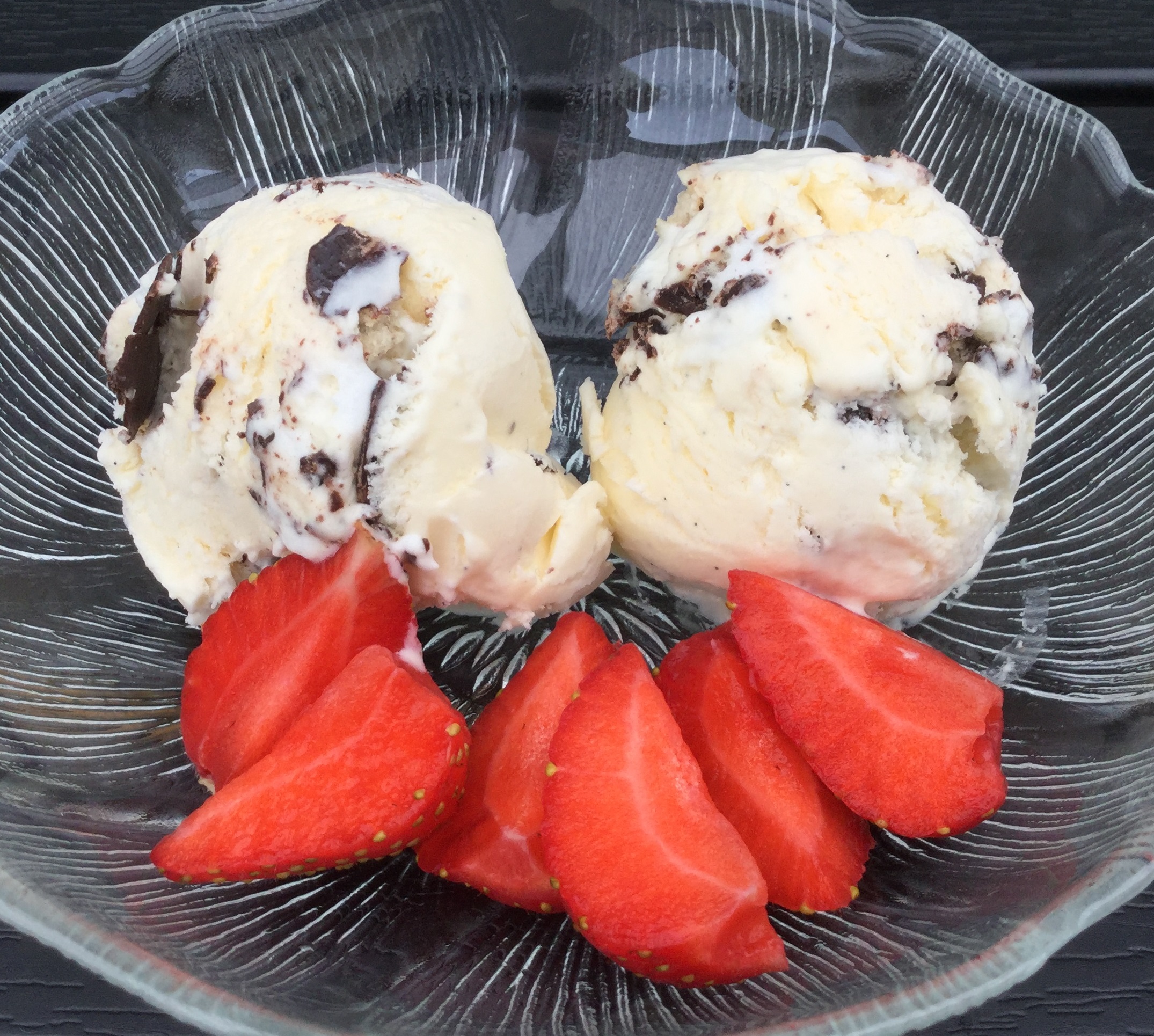 Æggeblommerne piskes luftige med sukker og vanillekorn. Pisk fløden til flødeskum og vend den i æggesnapsen. Hak flødebollerne groft (også bundene). Vend flødebollerne i isen og kom isen i en egnet beholder. Fryses i min. 4-5 timer.