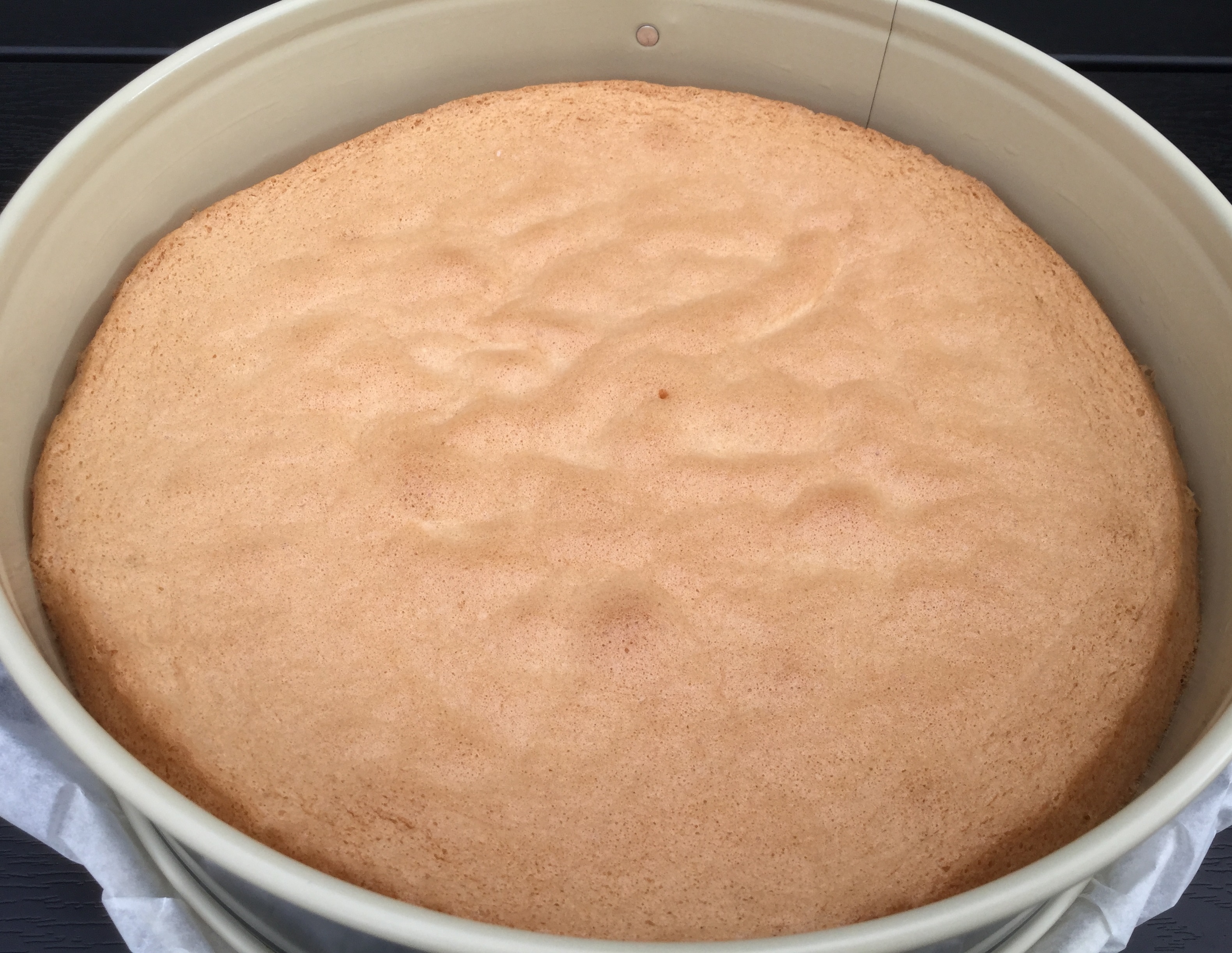 Pisk æg og sukker skummende. Bland mel med bagepulver, sigt det i dejen og vend forsigtigt rundt. Bag kagen i en smurt springform (ca. 25 cm) i ca. 20 minutter ved 175 grader. Lad kagen afkøle og flæk den i 2 bunde.